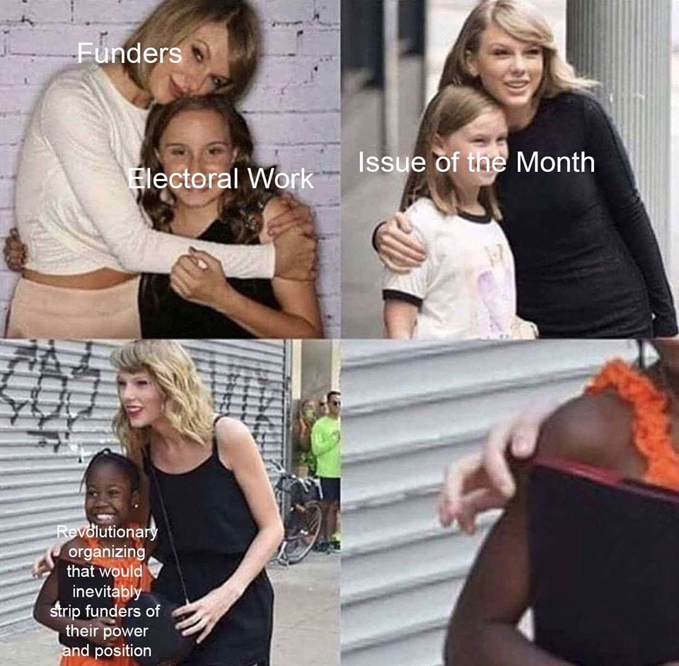 I believe that we must build organizations that can control real power and believe that much of that will lie in labor, the development of new political machines—for lack of a better term—and students. Social movement organizations and community organizations seem to only be able to develop temporary power, we must concentrate that power into real organizations that are mechanically built to easily mobilize specific groups of people who already have something in common (a workplace, a fandom), command money, or control some sector of the economy, including knowledge production. In terms of labor, we must be strategically placed at critical locations, from tech to trucking and teaching, that will maximize our power and influence. Students and labor can also serve as vital funding for our movements and operate the electoral machines we seek to build.